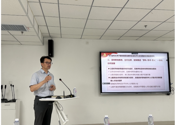 为全面贯彻落实党的二十大精神,深入开展学习贯彻习近平新时代中国特色社会主义思想主题教育,6月15日下午,永利集团304am登录党支部开展“支部书记讲党课”主题党日活动,永利集团304am登录院长、党支部书记周传健以“学习贯彻主题教育 聚力推动学校科研工作提档升级”为题,为永利集团304am登录全体党员、干部和职工讲了一堂生动的党课。